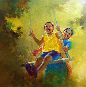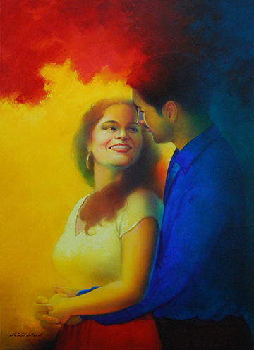 Happy Moments paintings and canvas prints—celebrating love, family, and life’s joyful scenes. Prices start from ₹999. Originals and unframed prints available; all shipped rolled.