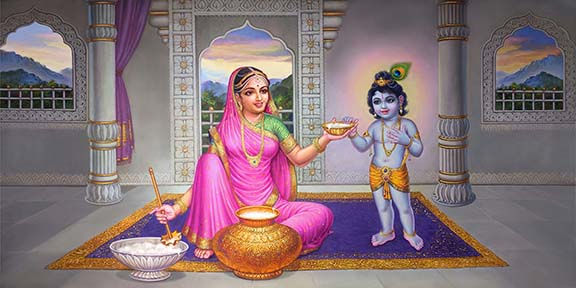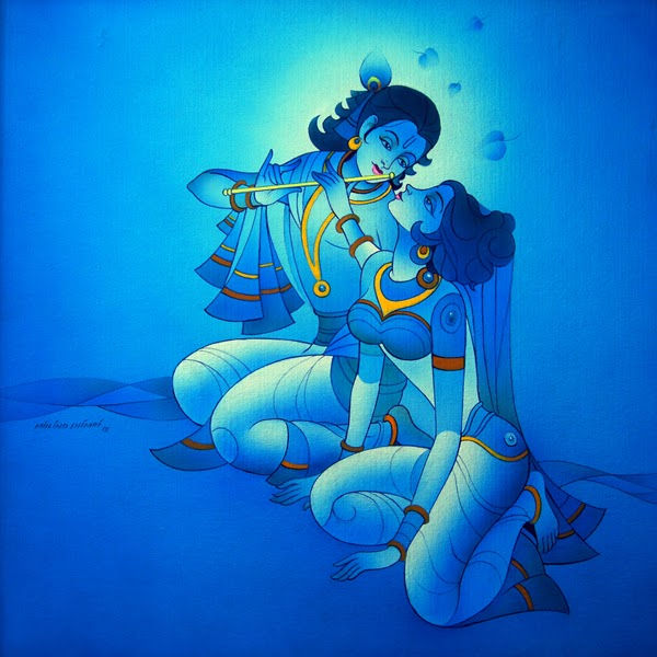 Vibgyor Series paintings and canvas prints—seven-color depictions of Radha Krishna in vibrant palettes. Prices start from ₹999. Originals and unframed prints available; all shipped rolled.